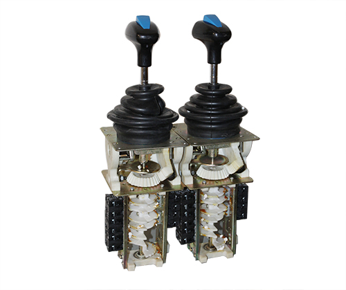 操纵手柄是球形。为避免由于起重机震动和意外碰撞使操纵机构误动作,该手柄带有零位自锁装置。手柄由上下两半球组成,只有提握下半球时,才能使手柄离开零位,操动机构。当手柄离开零位时,即可将下半球松开,继续操作。若经常采用反接制动停车,感到操纵不便时,可将手柄下半球提起再顺时针旋转,让下半球固定在提起位置,使零位自锁装置不起作用。六机构后手柄有下按式的零位自锁装置。