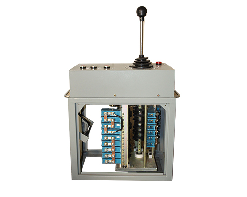 机械传动部份装在箱体上部的罩内,该传动机构分为单手柄联动操纵机构、抓斗双手柄操纵机构、主付钩双手柄操纵机构、单手柄操纵机构以及单手柄水平操纵机构。手柄运动都是用直齿齿轮传动凸轮轴的。控制器的凸轮轴均为立式布置,传动部份各支点全部用滚动轴承,以降低功率损耗。